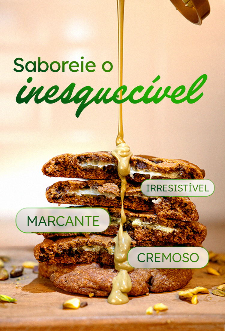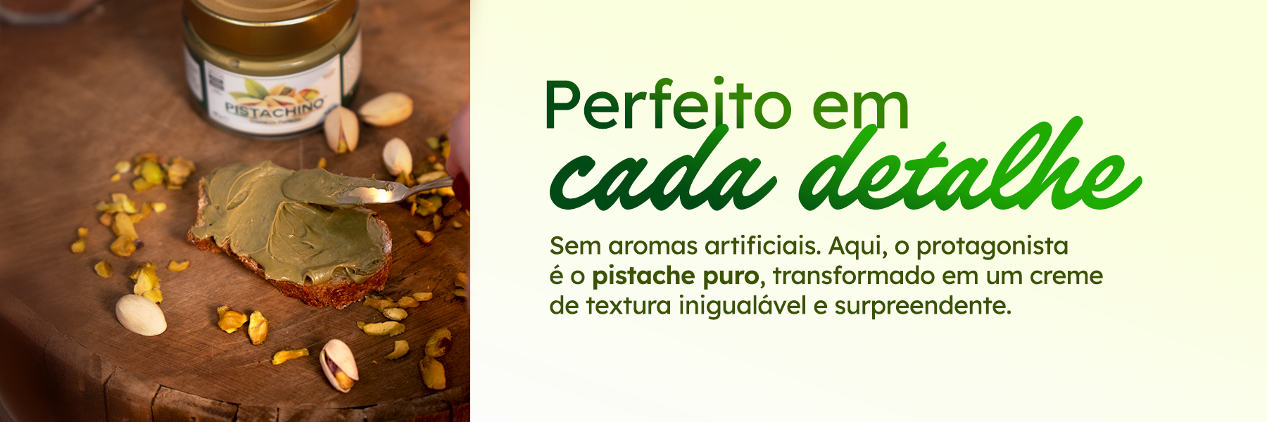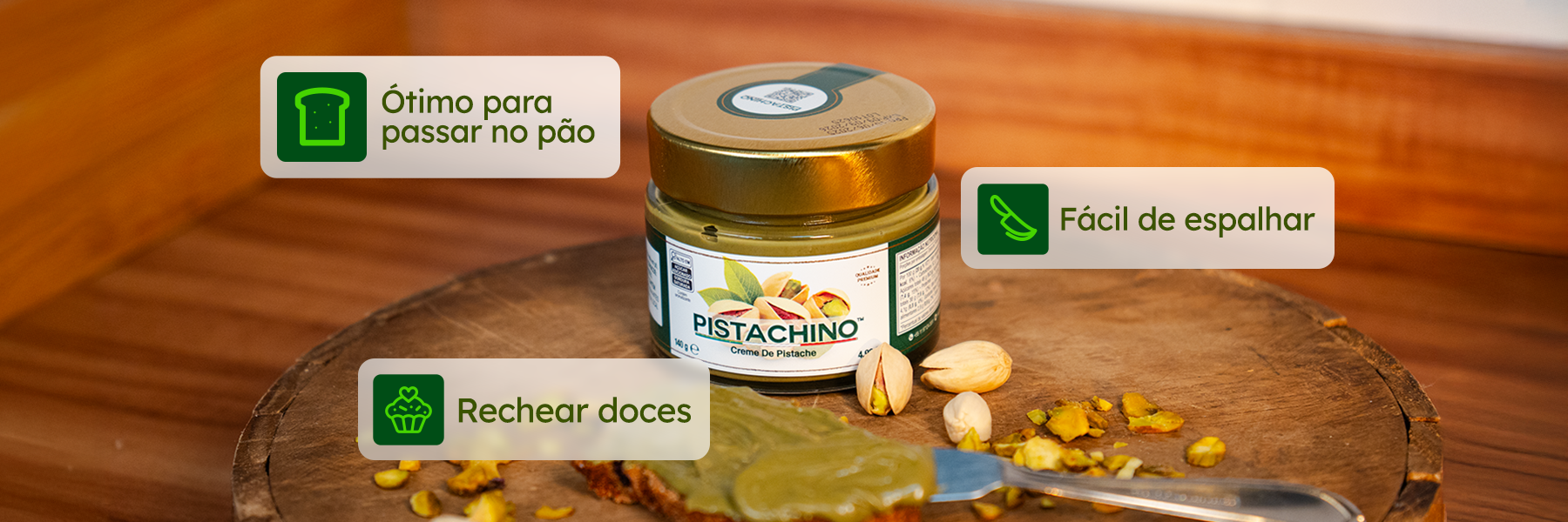 Não! A Pistachino é equilibrada: doce na medida certa, com o sabor intenso e natural do pistache.